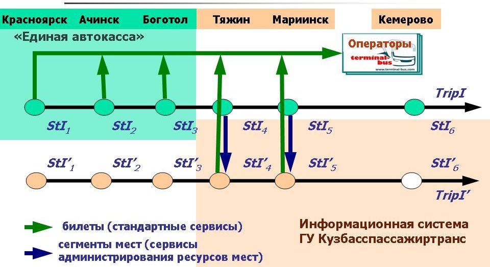Завершен очередной проект интеграции информационных компьютерных систем реализации пассажирских билетов Красноярского края (система «Единая автокасса») и Кемеровской области (система ГУ «КУЗБАССПАССАЖИРАВТОТРАНС»). Данные компьютерные системы обслуживают междугородные и пригородные автобусные маршруты. В рамках проекта разработана и внедрена технология распределенного администрирования ресурсов мест в системах реализации автобусных билетов.